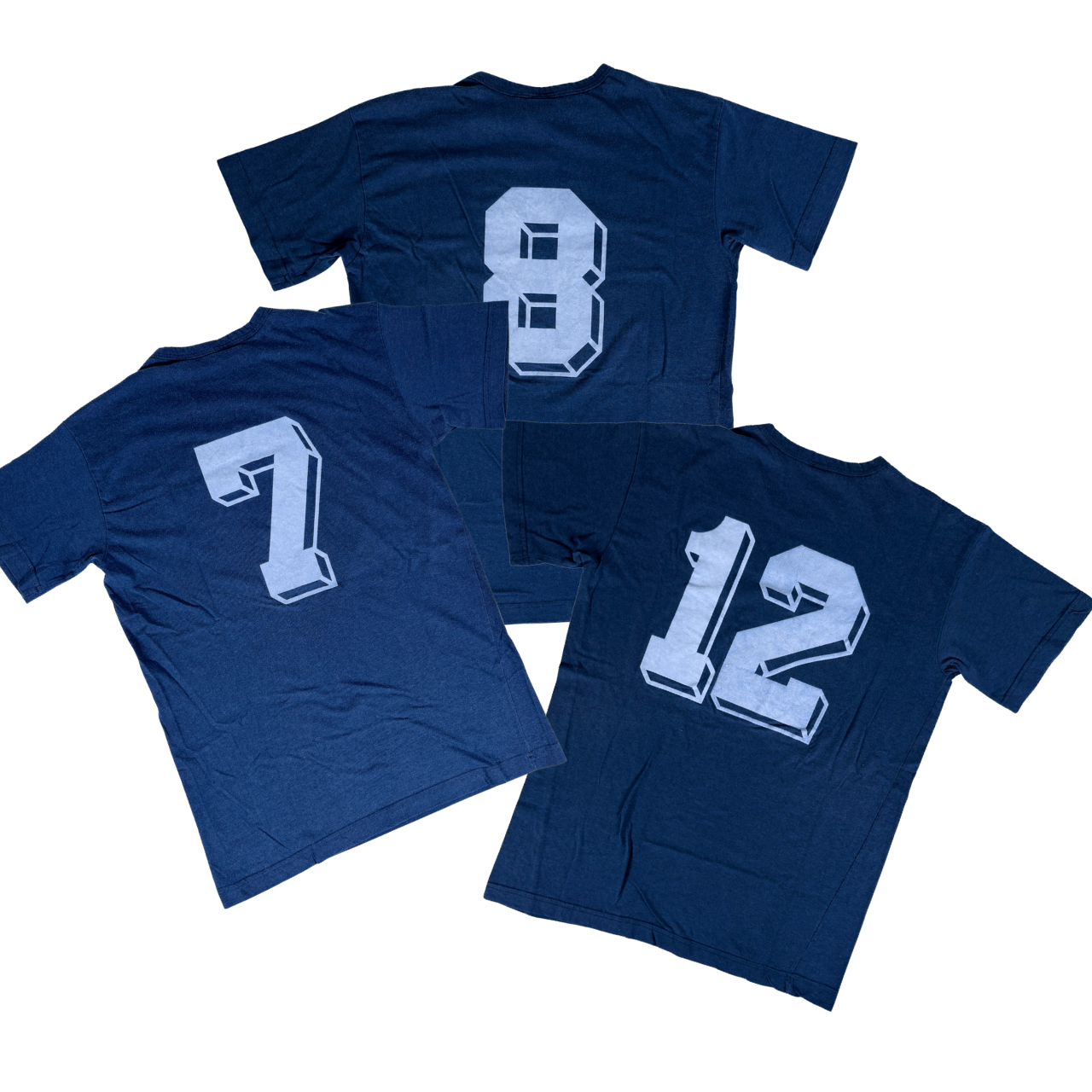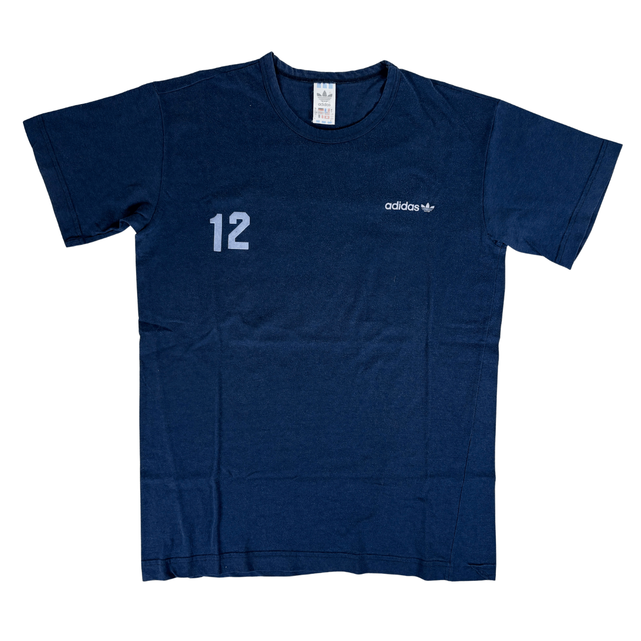 Condition: Used (pre-owned), good overall (7/10). Set of three vintage 1980s adidas training shirts (cotton blend). Flocked numbers 7, 8, and 12 on the front and back. Please note: some bobbling/pilling and colour fading from age/washing. The #12 is slightly misaligned. Price reflects the condition. Please review all photos carefully and feel free to message me with any questions