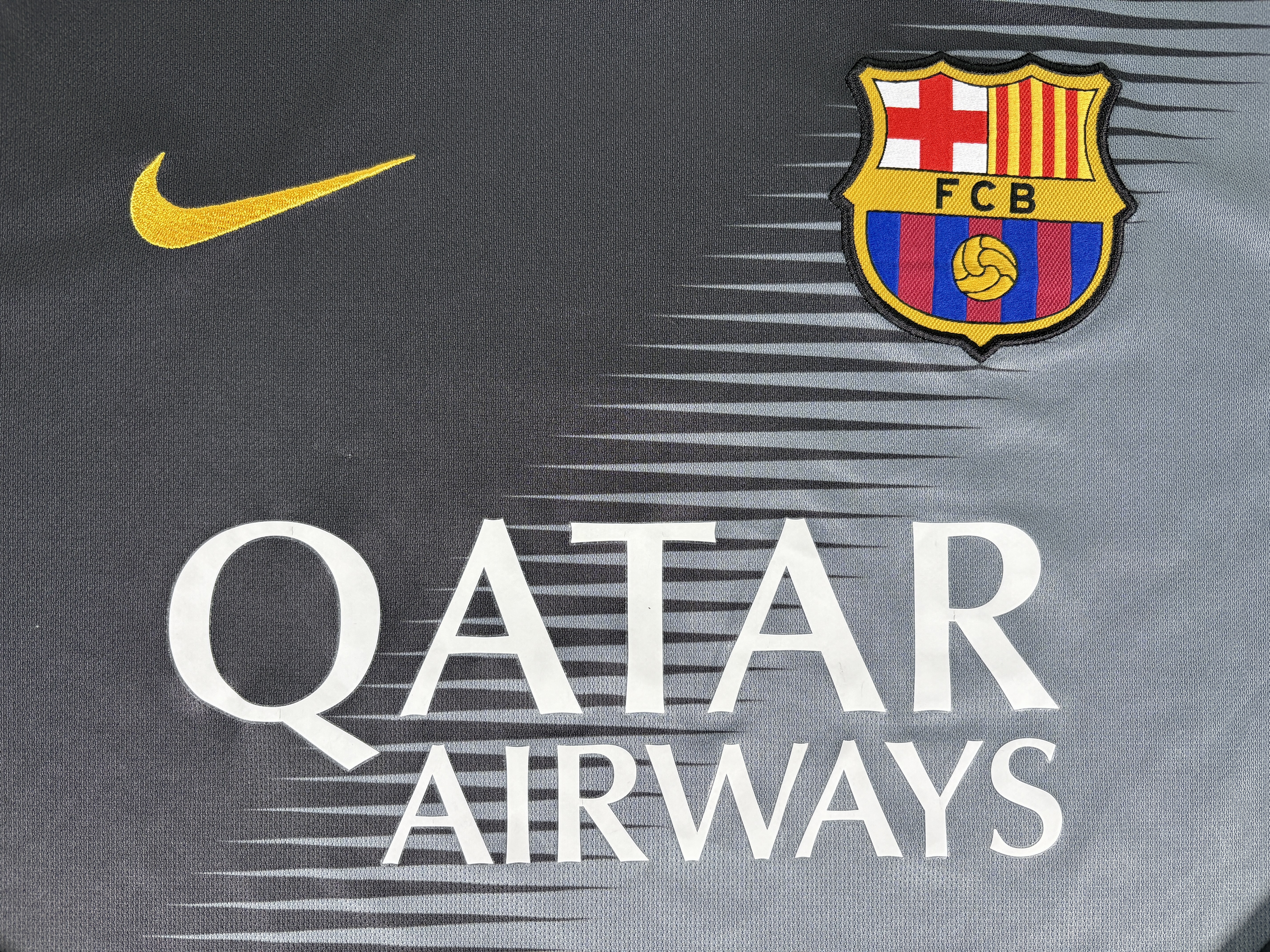 Conditions: Used (pre-owned) in GOOD CONDITIONS “7/10”. Crest and swoosh are stitched in good condition. Bright Colors. It has some of tiny pulls. the sponsors have some tiny cracks (“Q” “R”). Please see the photos and do not hesitate to ask.