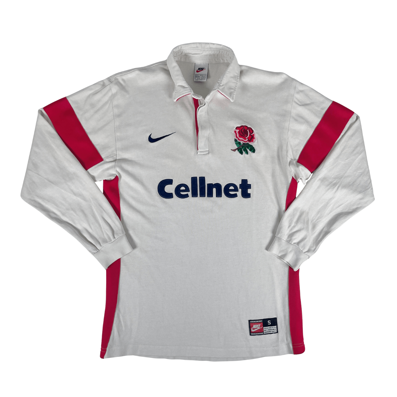 Conditions: Used (pre owned) in Very Good conditions “8/10”. Nice vintage jersey of the EnglandRugby Union team. Bright colors. Minor signs of use. It has a blue mark on the back and one small stain on the left cuff. Please see the photos and do not hesitate to ask.