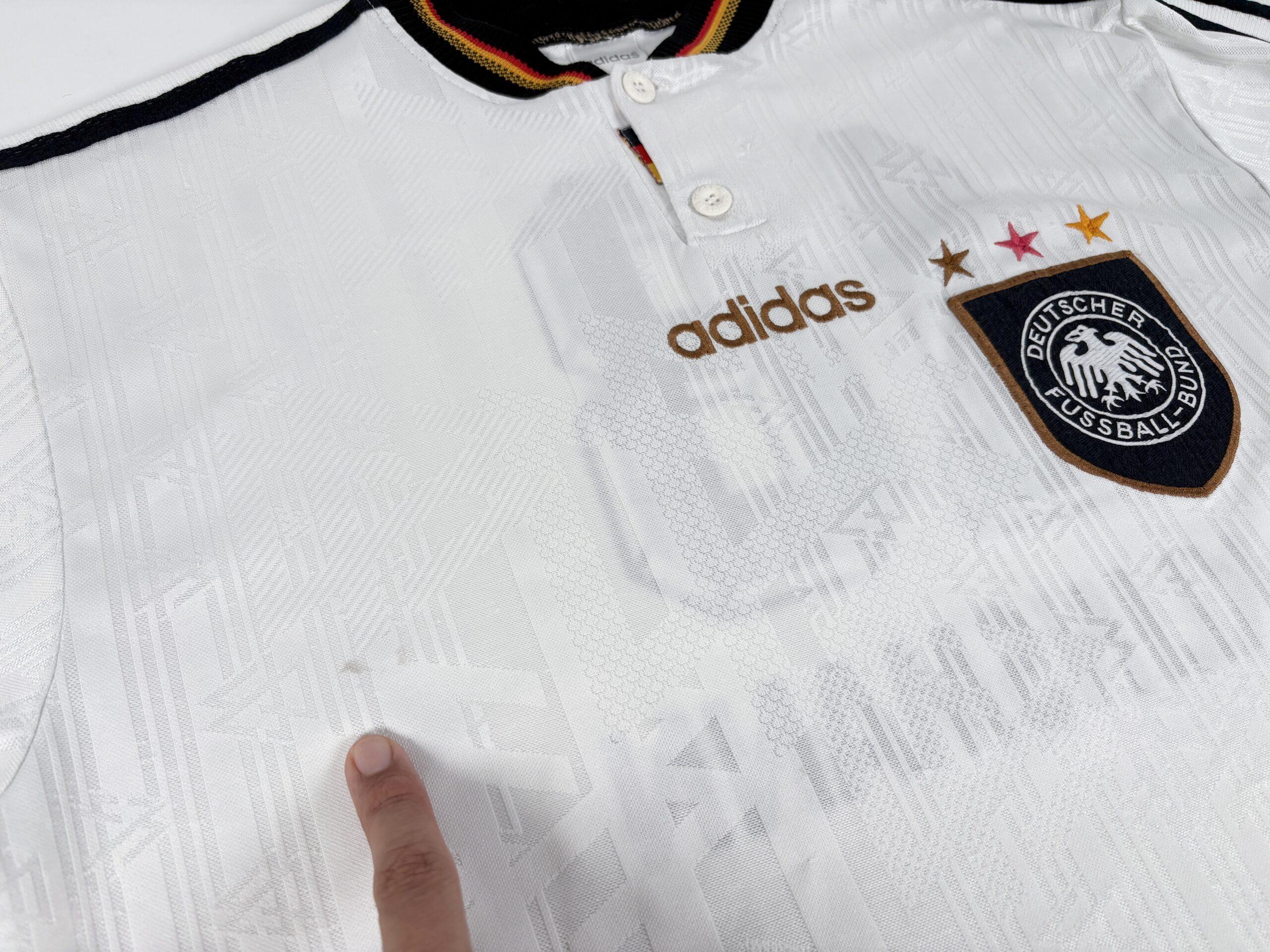 Conditions: Used (pre owned) in Fair / Good conditions “6/10”, Beautiful vintage shirt of the German national team. Name set of Klinsmann 18 printed at the age. It has several tiny pulls and some dark stains. the threads of the logo and crest has heavy discoloration. The price is based on conditions. Please see the photos and do not hesitate to ask.