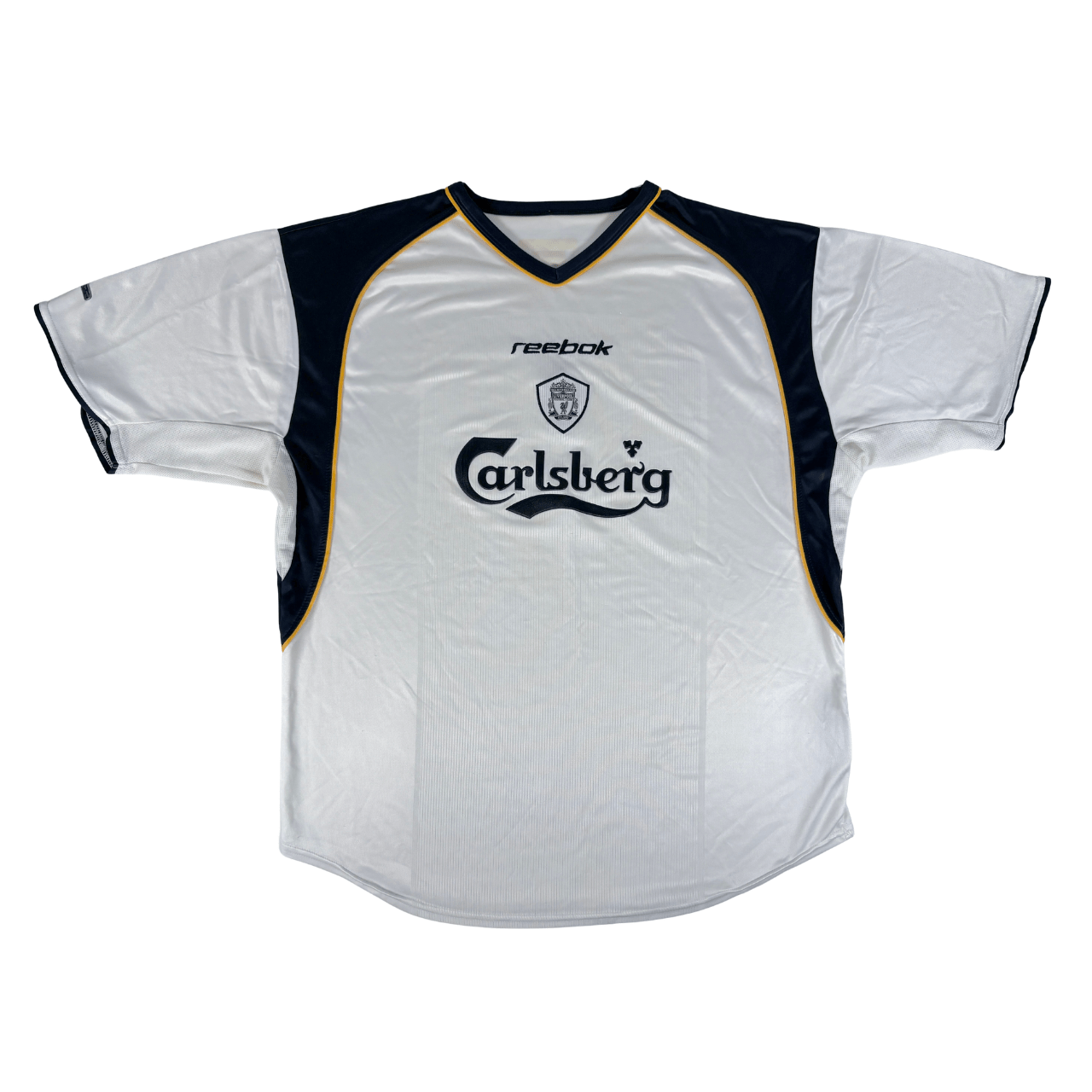 Conditions: Used (Pre-owned), very good overall (7/10). Rare Reebok third shirt. The size tag/size chart has faded, but it fits like a Medium or Large (please check the measurements). Main sponsor is in very good condition. Please note: a couple of tiny pulls. HYDROMOVE logo has damage. Price reflects the condition. Please review all photos carefully and feel free to message me with any questions.
