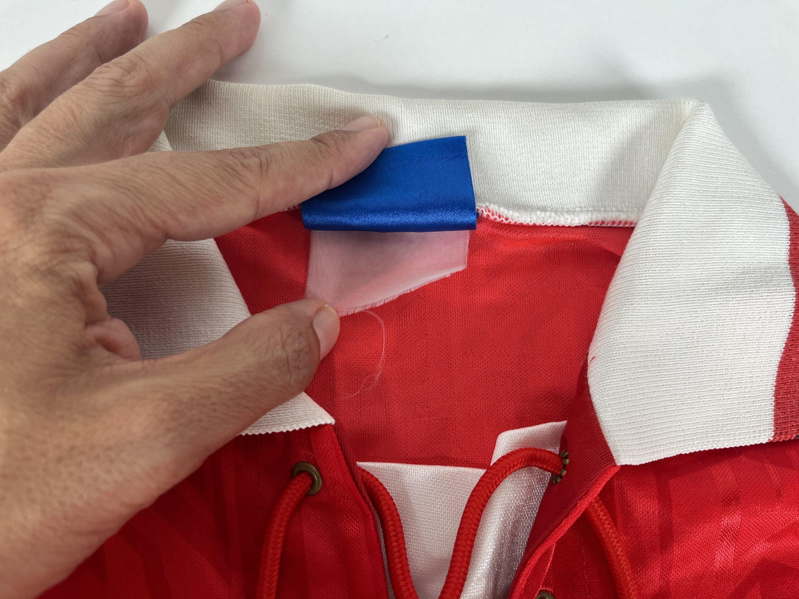 Conditions: Used(pre-owned) in Fair conditions (6/10). One of the most wanted shirt of the English club of the 90s made by UMBRO. The Club’s badge is attached in fair shape. It has many tiny pulls. The main sponsor and UMBRO logo are in good condition. not the original neck cord. The neck fabric has minor fade by washes. It has a couple for dark dot marks on front. The price is based on condition. Please read carefully description and check photos.
