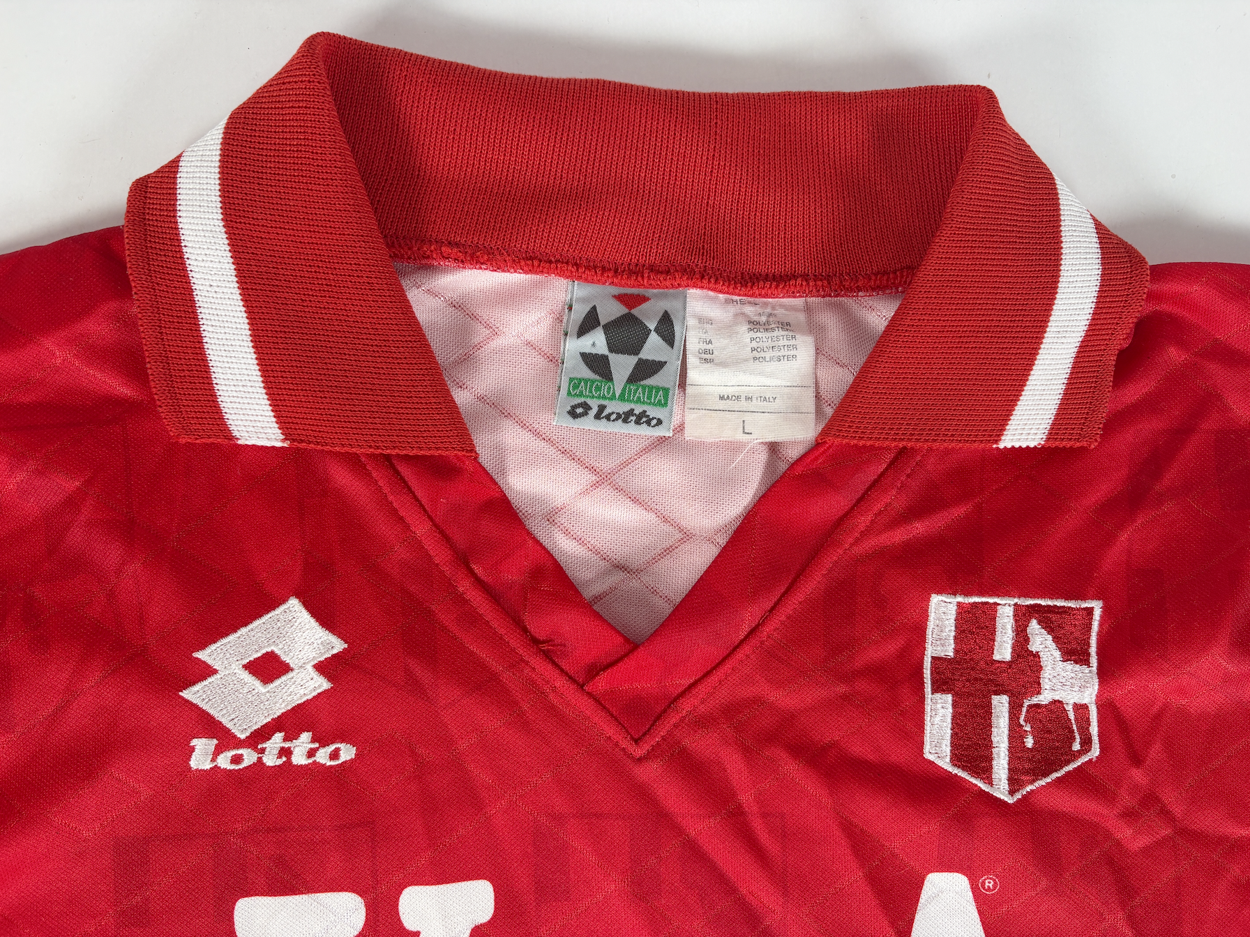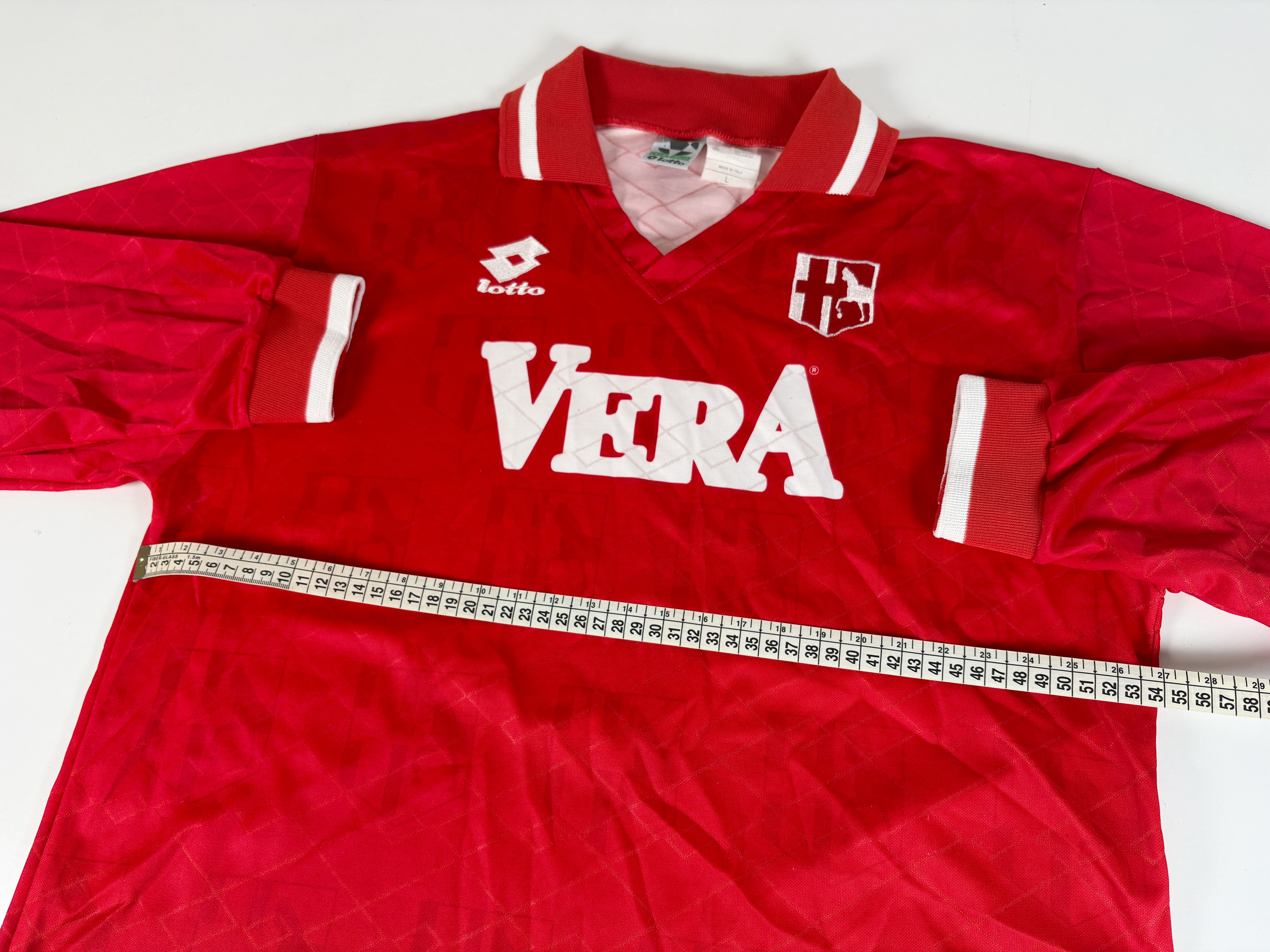 Conditions: Used (pre owned) in Very Good conditions “7/10”, Nice vintage Lotto shirt of the Italian club. Badges are embroidered. Long sleeves. Main sponsor within material. The lower seams has loose the threads (restored with fabric glue tape). The fabric is in good condition but It has a couple of tiny pulls and marks. The price is based on condition. Please see the photos. and do not hesitate to ask.