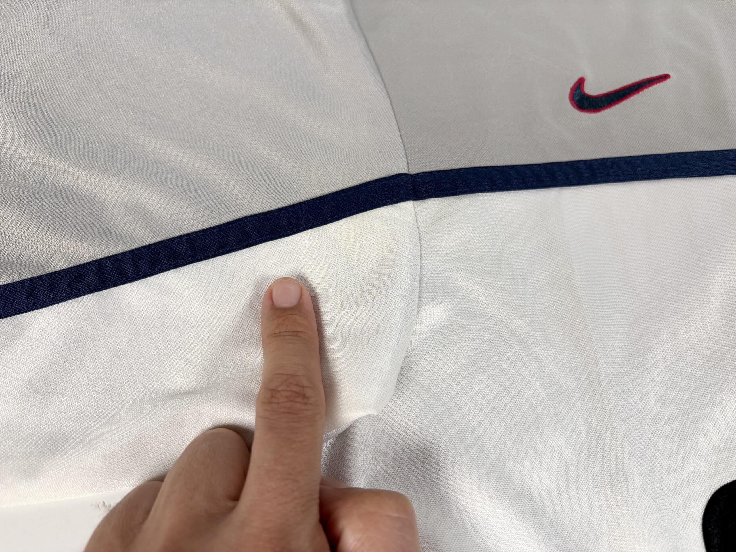 Conditions: Used (Pre-owned) in Fair/Good conditions 6,5/10,Nice away shirt. Bright colors, badges are stitched. nice material feel with some tiny pulls and tiny burn hole on the back. One big pull and mark on the lower front. It has yellow marks on the armpits (almost imperceptible). The price is based on condition. Please check photos.