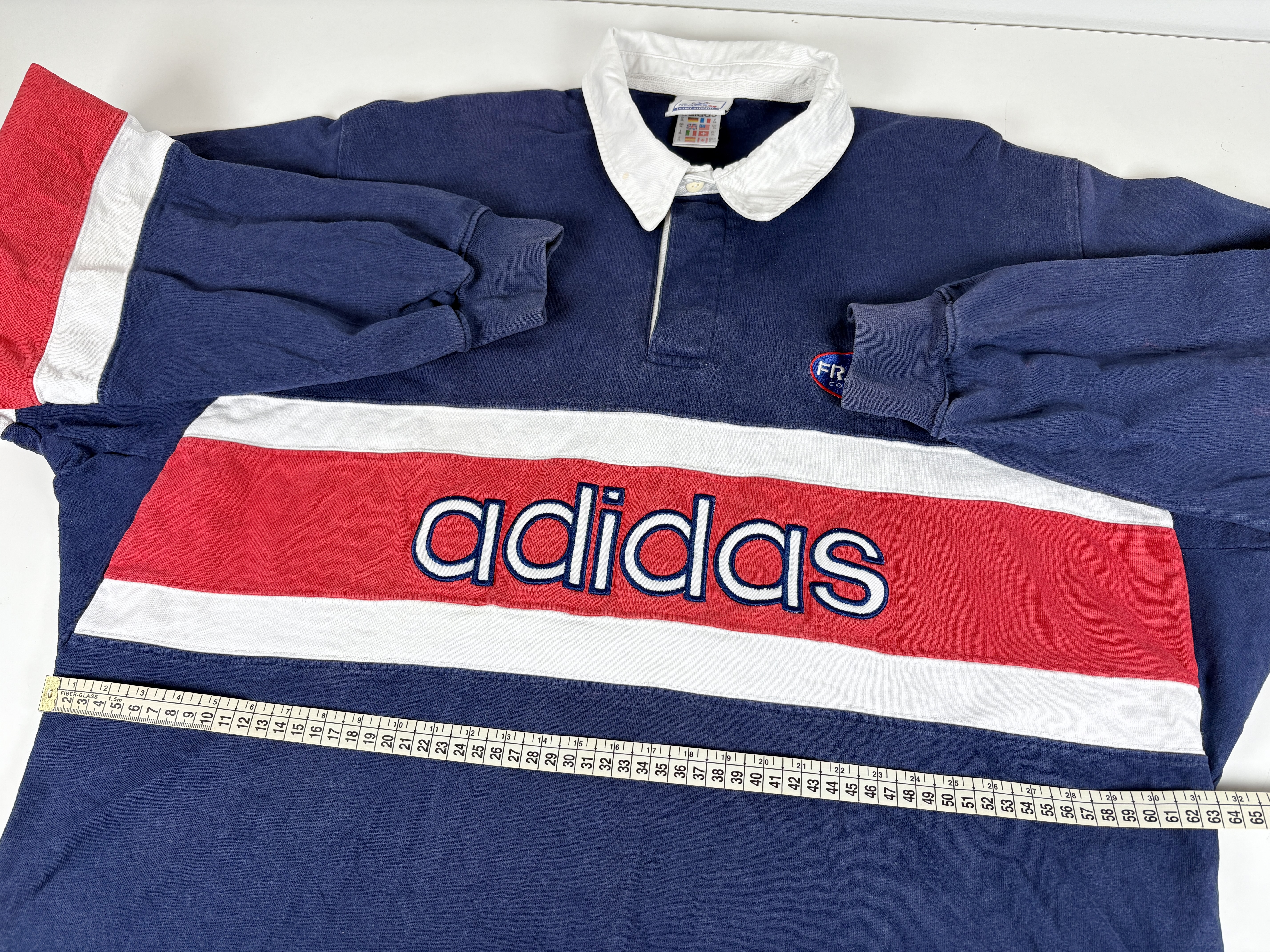 Condition: Used (pre-owned), good overall (6/10). Nice vintage adidas rugby-style shirt from the France 98 World Cup memorabilia range. The fabric shows slight fading due to age. Please note: a tiny dot mark on the neck/collar lapel and minor discolouration on one sleeve. Please review all photos carefully and feel free to message me with any questions.